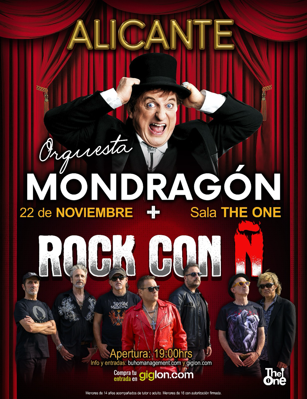 El próximo sábado 22 de noviembre, la Sala The One de San Vicente del Raspeig (Alicante) se prepara para vivir una noche épica con el espectáculo “Noches de Rock”, que reunirá sobre el mismo escenario a dos formaciones legendarias: Rock con Ñ y la mítica Orquesta Mondragón.