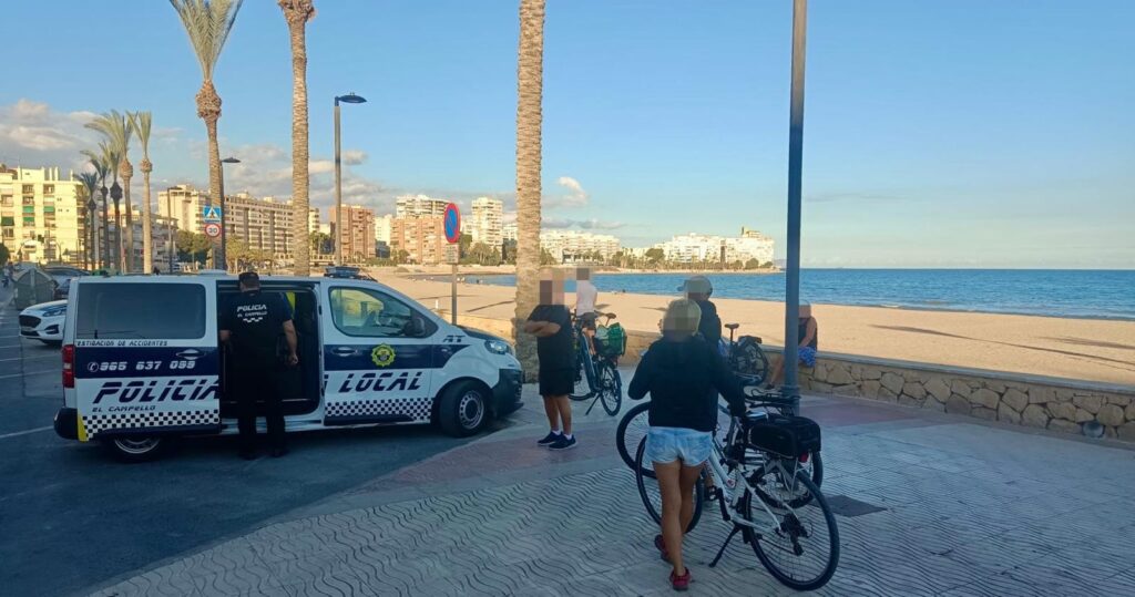 La Policía Local de El Campello intensifica estos días los controles en la banda peatonal de sus paseos marítimos por el uso de bicicletas y vehículos de movilidad personal (patinetes), que no está autorizado al tratarse de espacios públicos reservados a los peatones.
