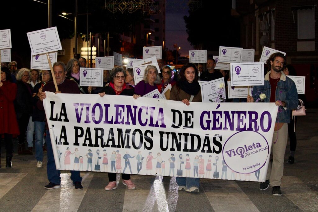 Tras la marcha que recorrió las calles del casco urbano desde el Ayuntamiento hasta el Centro Social, con pancartas y carteles reivindicativos y de denuncia, en el interior se procedió a la lectura del manifiesto, con intervención del alcalde, Juanjo Berenguer, la concejala de Mujer e Igualdad, y representantes de PSPV-PSOE, Compromís, Per El Campello, EU-Unides Podem, los dos concejales no adscritos, una integrante del cuerpo de la Policía Local, y dos mujeres integrantes de Amudeca y Plataforma Violeta.