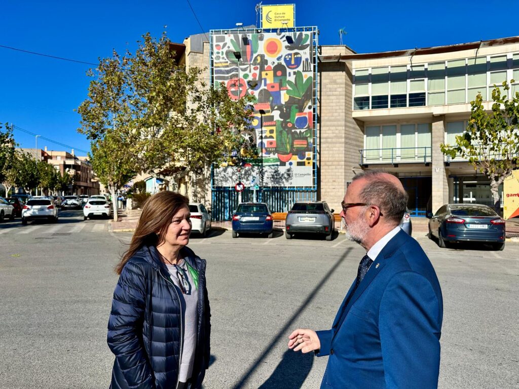 Desde ayer por la tarde, ya luce en la fachada de la Casa de Cultura de El Campello la lona de 54 metros cuadrados diseñada por el artista Dafnis Casado, con residencia en Barcelona, que se impuso al resto de propuestas artísticas presentadas al concurso público convocado por la concedjalía de Cultura que dirige Dorian Gomis.