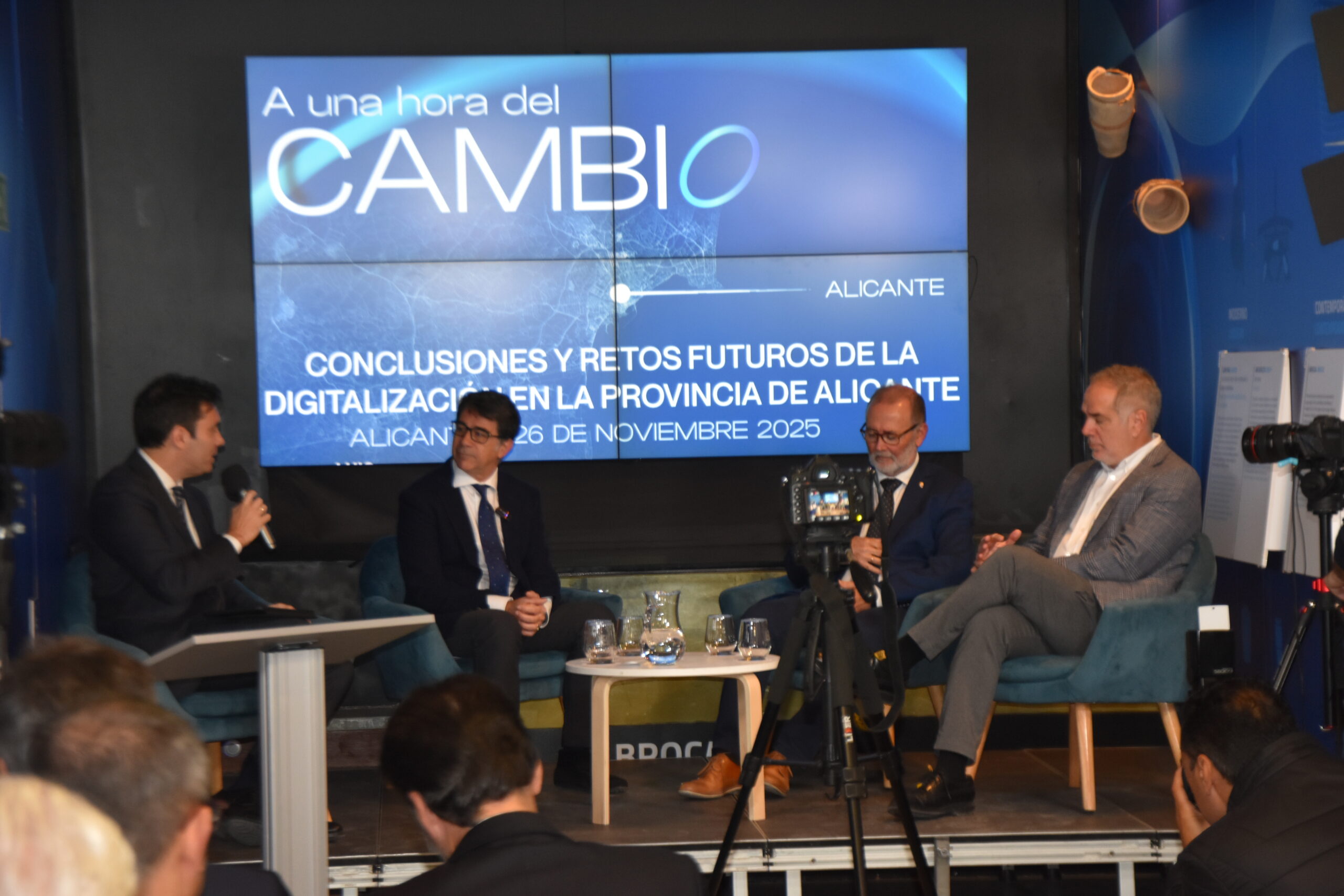 La clausura del proyecto A una hora del cambio, celebrada esta semana en el Museo de Aguas de Alicante, reunió a los alcaldes de los principales municipios de L’Alacantí para abordar los retos comunes de la comarca en materia de digitalización, gestión del agua y modernización de servicios públicos. En el acto intervinieron el alcalde de Alicante, Luis Barcala; el de San Vicente del Raspeig, José Rafael Pascual; el de El Campello, Juan José Berenguer; y el de Sant Joan d’Alacant, Santiago Román, que compartieron una visión conjunta sobre el potencial de crecimiento de la comarca y la necesidad de seguir cooperando.