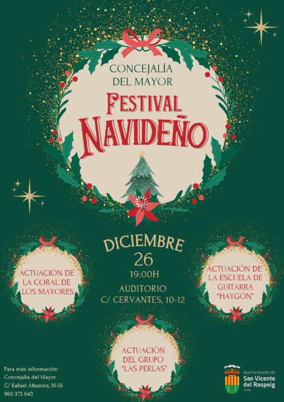 Con esta agenda, la Concejalía del Mayor reafirma su compromiso con una Navidad participativa, inclusiva y centrada en el bienestar y la actividad de las personas mayores de San Vicente del Raspeig.