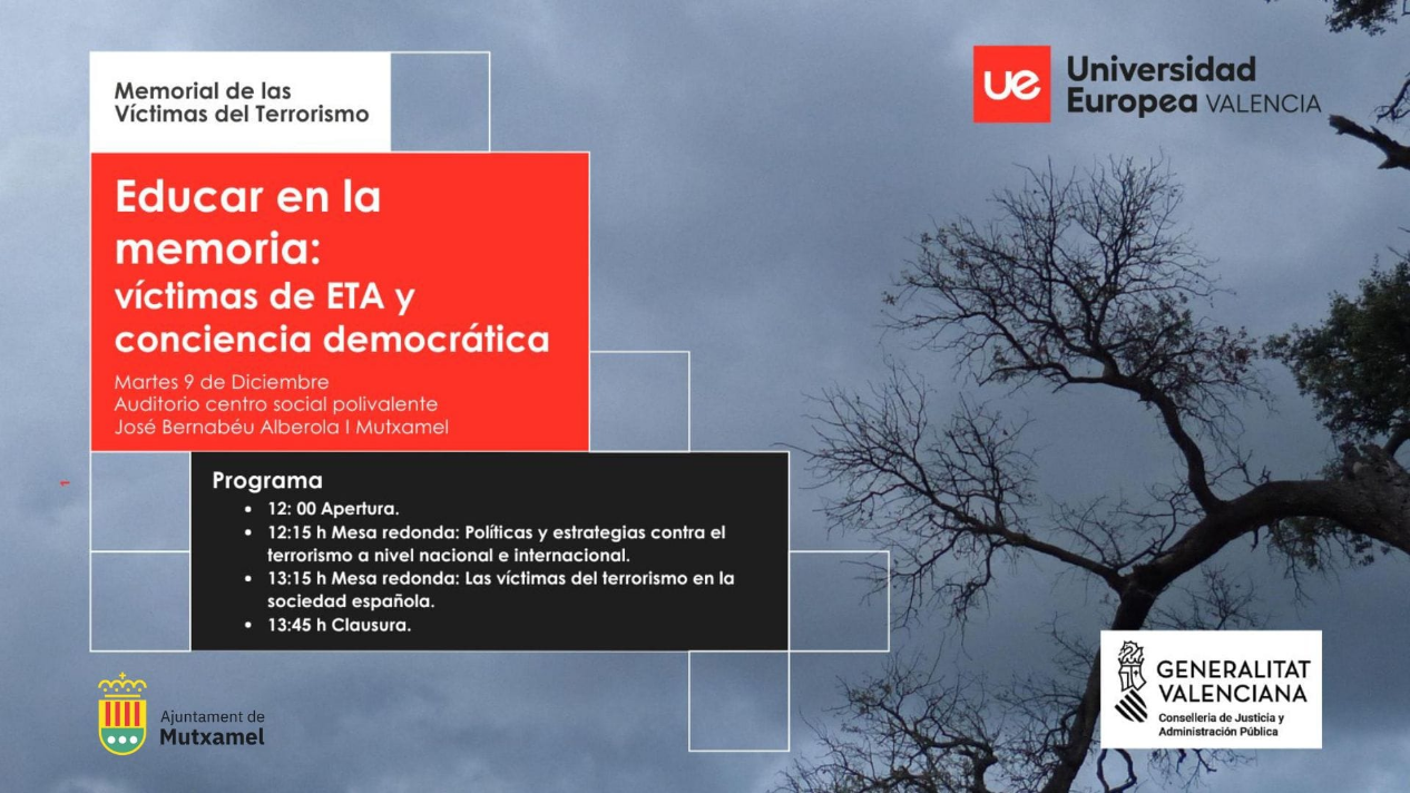 La Universidad Europea de Valencia, en colaboración con la Generalitat a través de la Conselleria de Justicia y Administración Pública, participa en la conmemoración anual del atentado de Mutxamel organizada junto al Ayuntamiento de Mutxamel.
