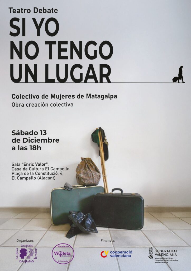 La Casa de Cultura de El Campello acogerá el próximo sábado 13 de diciembre de 2025, a las 18:00 horas, la representación de “Si yo no tengo un lugar”, una propuesta escénica del Colectivo de Mujeres de Matagalpa que combina teatro y debate social para reflexionar sobre la migración y sus impactos específicos en la vida de las mujeres.