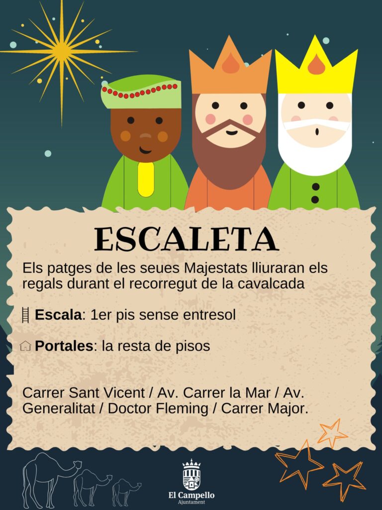 El departamento de Fiestas y Tradiciones del Ayuntamiento de El Campello, que dirige Marisa Navarro, ha ultimado ya el dispositivo especial diseñado para recibir como se merecen a los tres Reyes Magos de Oriente: Melchor, Gaspar y Baltasar, que no faltarán a su cita anual con el municipio en la tarde-noche del 5 de enero.