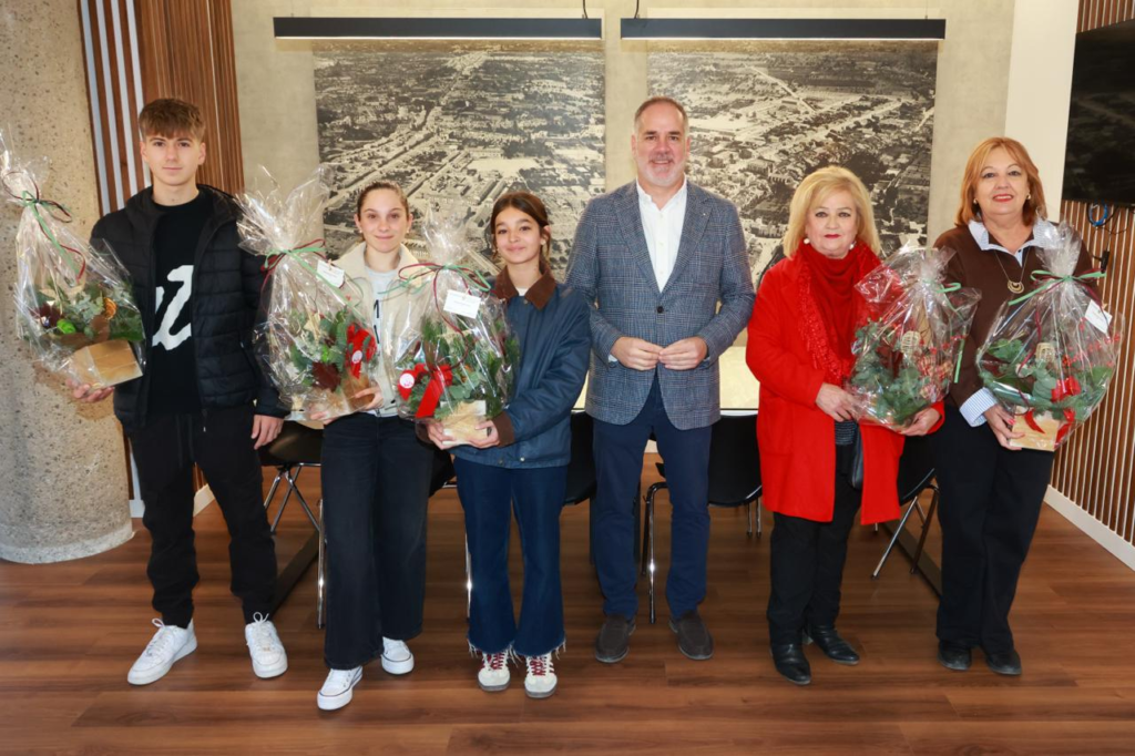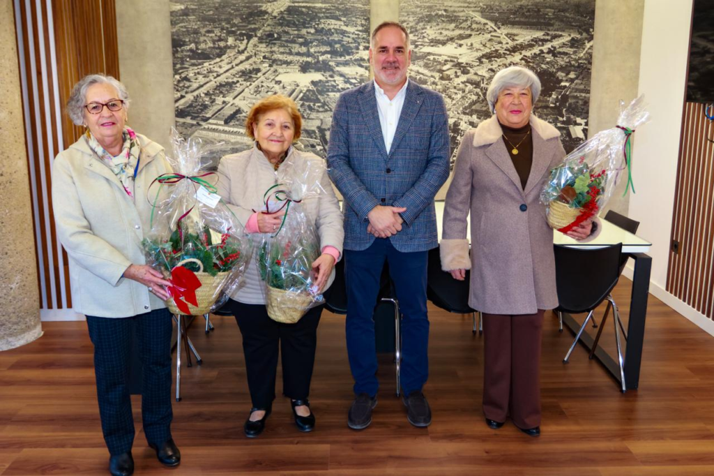 Durante el encuentro, las señoras, jóvenes y niñas que ostentan este año los cargos representativos de la Comisión de Fiestas del Santísimo Cristo de la Paz, la Comisión de Hogueras de Sant Joan d’Alacant, la Comisión de Fiestas de Fabraquer, la Casa de Andalucía “Rafael Albert” y las personas mayores de Sant Joan recibieron de manos del alcalde un centro floral navideño.