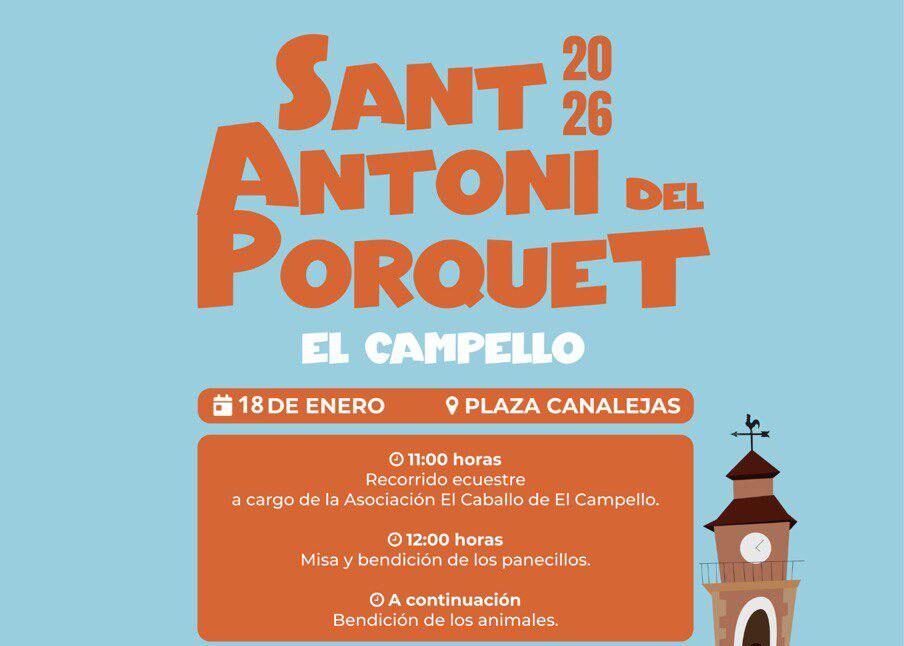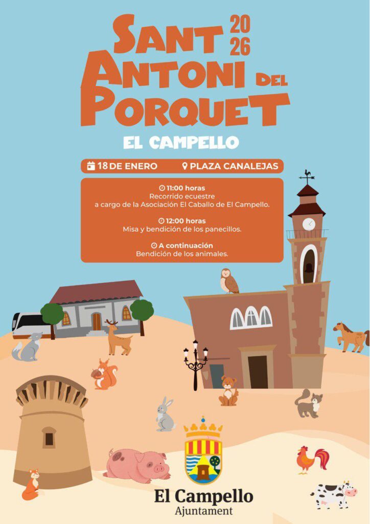 Una fiesta tradicional que se celebra puntualmente cada año en El Campello. Este domingo, 18 de enero de 2026, los animales serán los auténticos protagonistas de la festividad de Sant Antoni del Porquet, con el desarrollo de unos actos que se celebrarán por la mañana en la Plaza de Canalejas o de la Iglesia como epicentro.