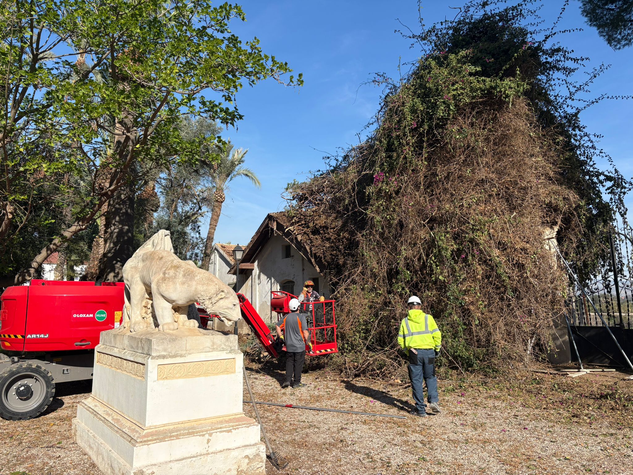 Las plantas han afectado tanto a la casa de los guardeses como el vallado perimetral anexo. Será eliminada de raíz. La obra contratada y en marcha consiste en la reposición de elementos deteriorados del muro de bloque, la portada de acceso y cerrajería original, la reconstrucción de la cubierta de la vivienda del guarda, consolidación estructural y recuperación de los elementos singulares, y dotar de accesibilidad y aseos públicos a las estancias recuperadas, para que dar un servicio necesario al conjunto de la finca.