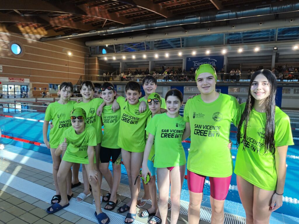 El Club Natación San Vicente ha vuelto a demostrar el gran estado de forma de su cantera. En una intensa jornada de competición en el Control Libre Alevín de Invierno, el equipo desplazado a Torrevieja —compuesto por 12 nadadores (9 chicos y 3 chicas)— logró posicionarse en lo más alto de varias pruebas, reafirmando el trabajo que se realiza diariamente en la piscina local.