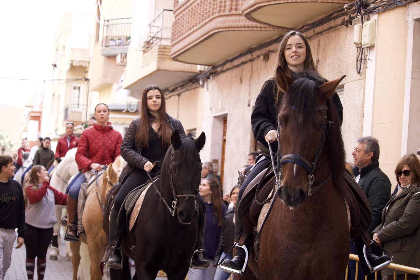 Al terminar la misa, se procedió a la bendición de los panecillos, y acto seguido se escucharon los cascos de los caballos anunciando la llegada del esperado desfile. La Asociación «El Caballo» de El Campello, bajo la dirección de figuras como Enrique Moreno Sierra, ha llevado a cabo un imponente recorrido que partió desde el Vincle, siguiendo por el casco urbano, la Calle Mayor y alrededores, para finalmente terminar en la Plaza de la Iglesia, despertando la emoción de todos los presentes, en especial de los niños, por la belleza de los distintos caballos y los carros de los que tiraban.