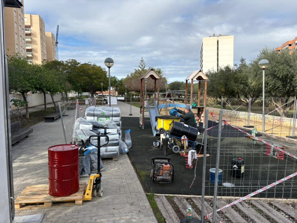 Los parques de Carrer Vent de Llebeig y Vent de Mestral, muy próximos a la avenida Ausias March, son los primeros que serán reformados y en los que se actúa ya. La empresa adjudicataria de los trabajos, en los que el Ayuntamiento invierte 893.000 euros, estima que estas dos áreas estarán finalizadas en una semana.