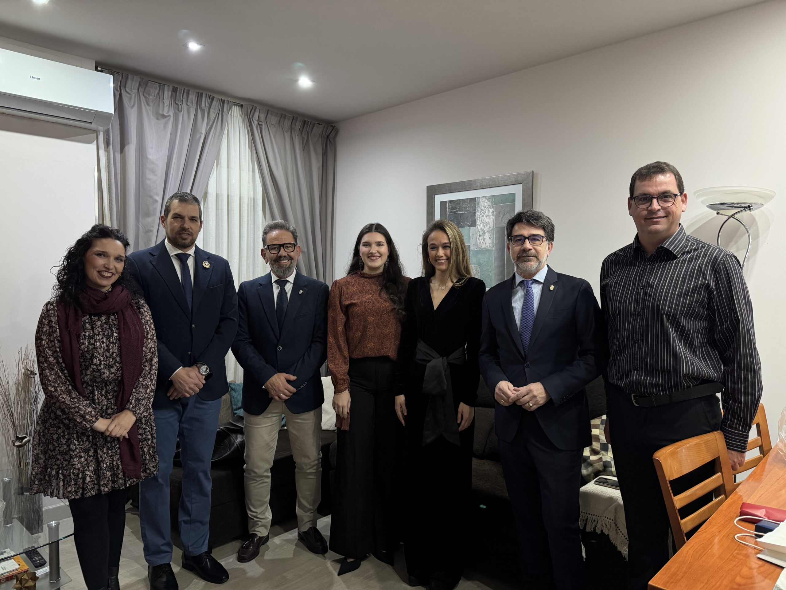 El alcalde, Pachi Pascual, acompañado del concejal de Fiestas, Cristian Gil, el presidente de la Comisión Municipal de Fiestas, Iván Torregrosa, y de las actuales la Reina de las Fiestas, Lucía Díaz, y la Reina de la Primavera, Carlota Pastor, han comenzado el acto visitando la vivienda de la pequeña Paula.