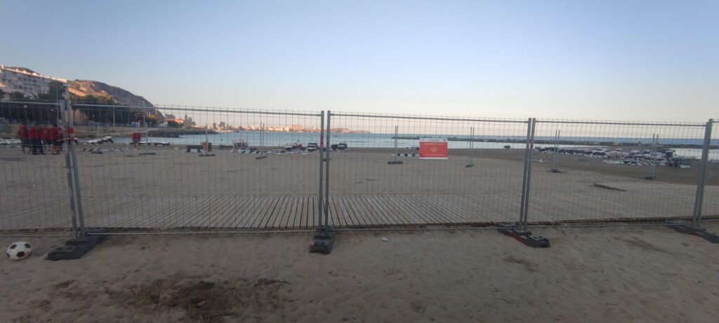 La primera: una comisión de fiestas que necesita montar una barraca en una calle durante varios días. El reto no es solo colocar mesas y sillas, sino hacerlo de forma segura y funcional. Evealia aporta vallas peatonales para delimitar el espacio, vallas altas de tres metros para el perímetro del recinto, grupos electrógenos que garantizan suministro continuo, aseos químicos —también adaptados—, mesas, sillas, taquillas para que los socios guarden sus pertenencias y una planificación que permite montar y desmontar sin interferir en la vida del barrio. Todo encaja porque alguien ha pensado en el conjunto.