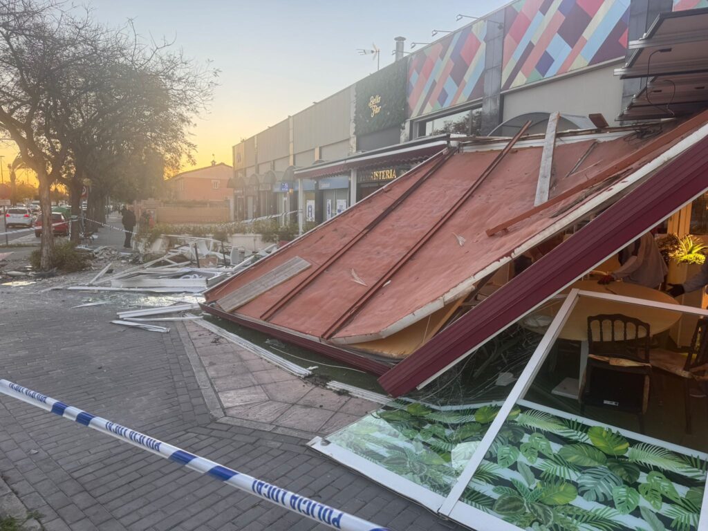 Una fuerte racha de viento registrada durante la madrugada del 19 al 20 de febrero ha provocado la caída de una pérgola en la rotonda de Sol y Luz, en el término municipal de San Vicente del Raspeig. El incidente, ocurrido en uno de los restaurantes de la zona, ha ocasionado importantes daños materiales, aunque no se han registrado heridos.