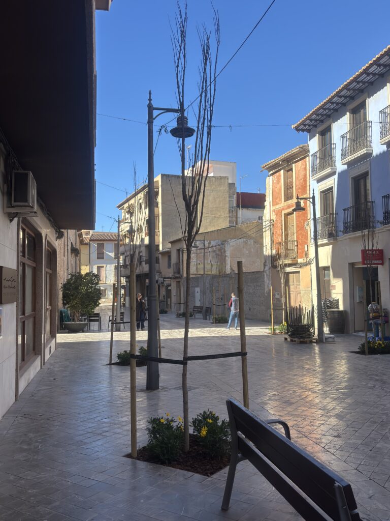 En paralelo, en la calle del Carmen se han plantado nuevos ejemplares de Koelreuteria paniculata ‘Fastigiata’, una especie de crecimiento columnar especialmente adecuada para calles de anchura reducida y con menor insolación, lo que garantiza una mejor adaptación al entorno urbano existente. La actuación ha permitido además una mejora integral de la zona, aprovechando la intervención para reparar y profundizar la red de riego, que se había visto afectada por el crecimiento radicular de los ejemplares anteriores.