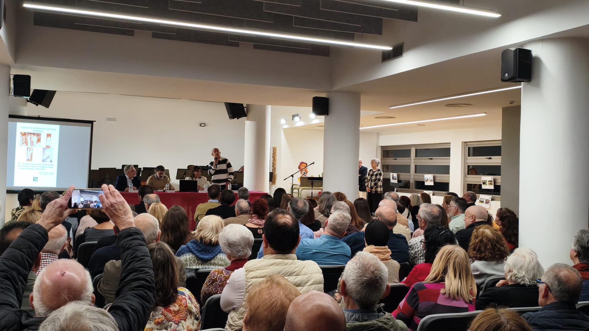 Al término del acto, los asistentes pudieron observar de primera mano la portada del Cuaderno de la Memoria y fotografías históricas que ya forman parte del acervo cultural del municipio. La presentación cerró con un aplauso unánime a los investigadores y una sensación de orgullo por la conservación de la memoria festera sanvicentera.