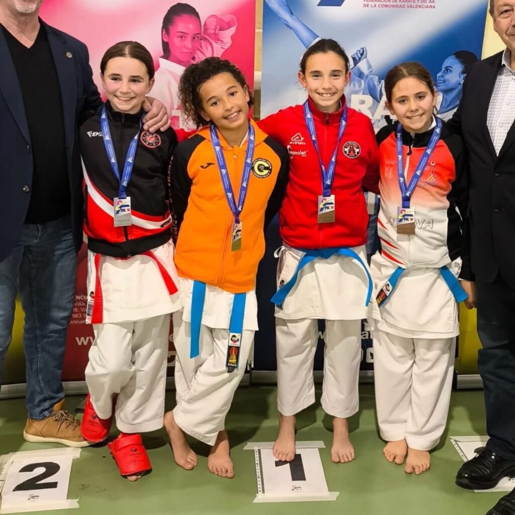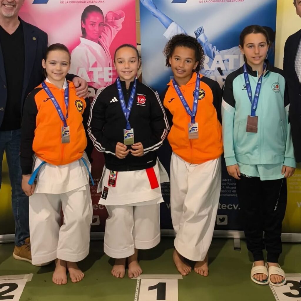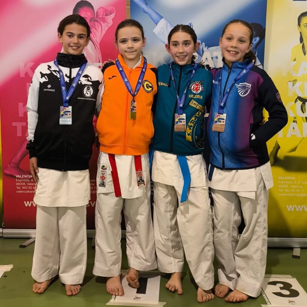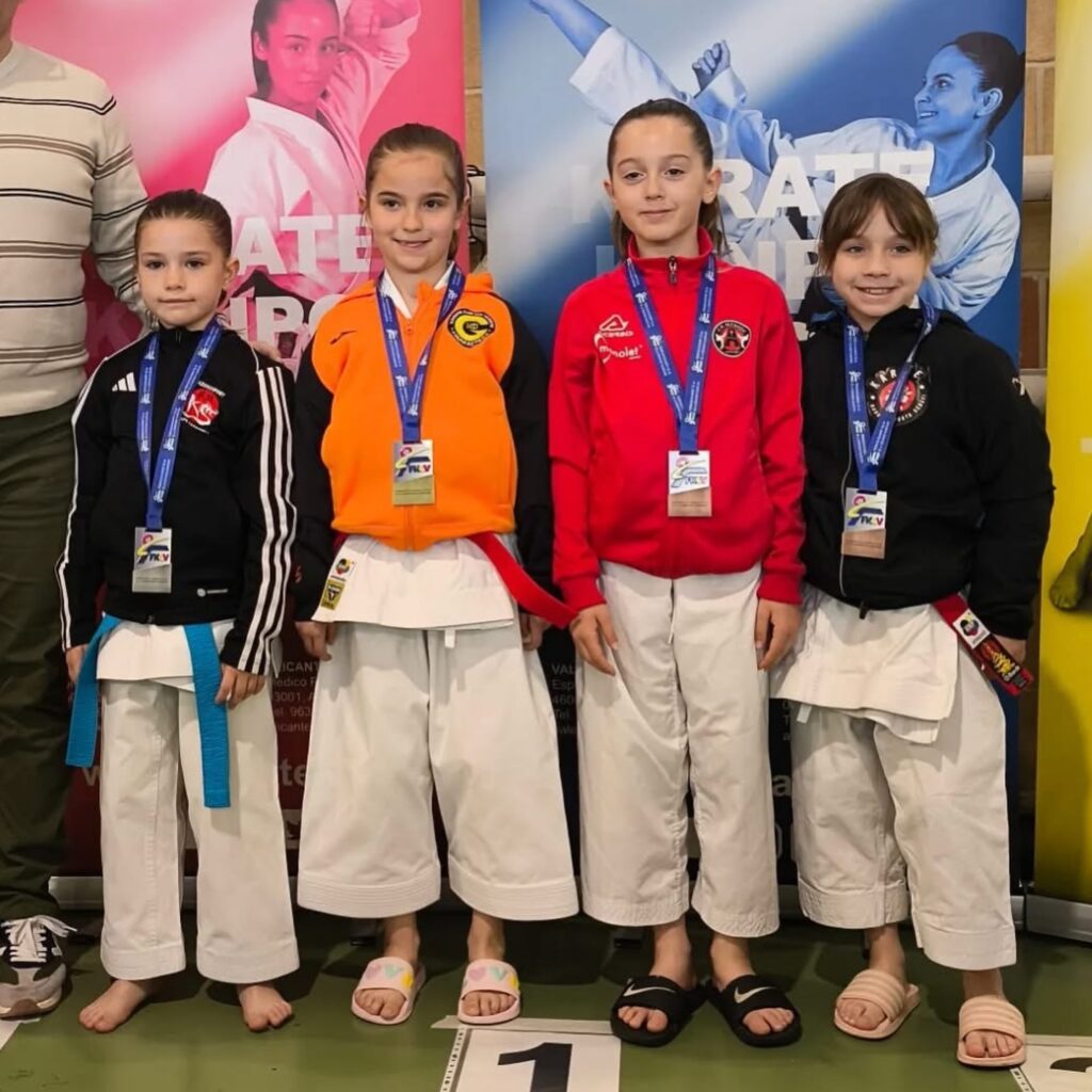 En lo más alto del podio, el club logró cuatro medallas de oro gracias a Freya Casamayor, en kata benjamín; Jimena Gallego, en kata alevín; Gina Castro, en kumite infantil -36; y Holly Manzueta, en kumite infantil -42.
