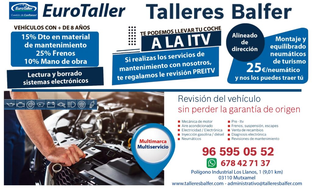 Talleres Balfer se ha consolidado como uno de los talleres mecánicos de referencia en la provincia de Alicante, ofreciendo un servicio integral para la reparación, mantenimiento y puesta a punto de vehículos de todas las marcas. Con más de tres décadas de trayectoria profesional, este taller combina experiencia, tecnología avanzada y un trato cercano para garantizar que cada cliente recupere su vehículo en óptimas condiciones y con total confianza.