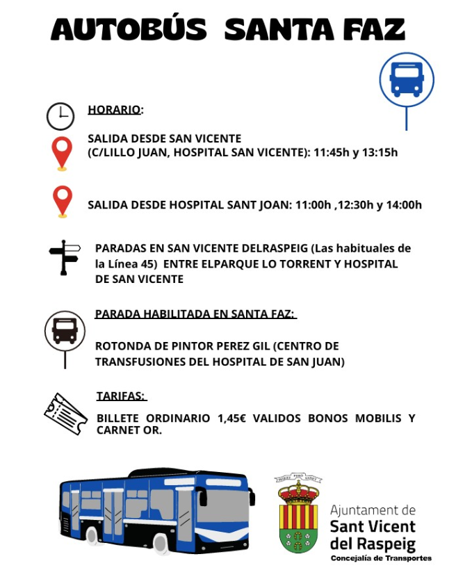 El Ayuntamiento de San Vicente del Raspeig, a través de la Concejalía de Transportes que dirige el edil Vicente Pastor, ha anunciado la puesta en marcha de un servicio especial de autobús con motivo de la tradicional romería de Romería de la Santa Faz, una de las citas más emblemáticas de la provincia.