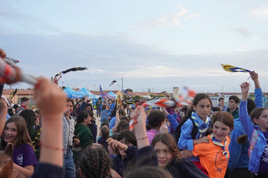 Ayer al mediodía, una vez montadas las tiendas de campaña y dispuesto el campamento, se procedió al tradicional ritual de izada de anderas (nacional, regional y la del movimiento Scouts), mientras sonaba el himno de la organización, coreado por todos y todas las participantes.