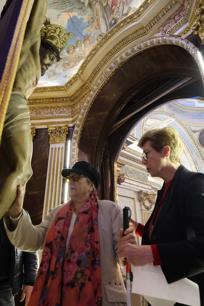 Durante la jornada, las personas asistentes han podido descubrir parte del patrimonio religioso de la Semana Santa de Sant Joan d’Alacant a través del sentido del tacto, explorando de manera directa algunas de las imágenes y elementos más representativos de esta tradición.