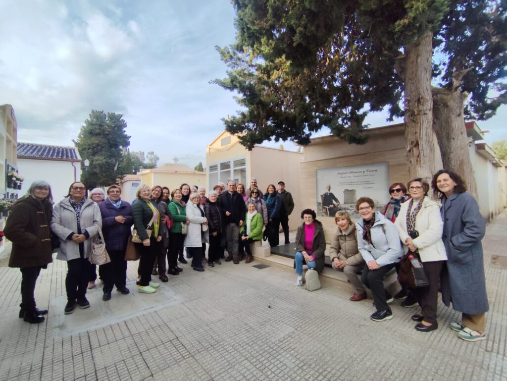 Alumnos mayores de la Universidad de Valencia visitan la sepultura de Rafael Altamira en el cementerio de El Campello