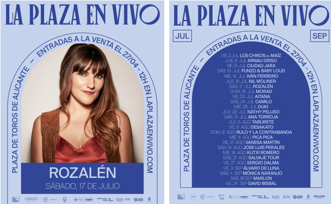 ROZALÉN, actuará en la Plaza de Toros de Alicante el próximo sábado 17 de julio, dentro del ciclo de conciertos “LA PLAZA EN VIVO”, que promete convertirse en uno de los eventos más importantes del panorama cultural de la ciudad, de la mano de HORIZONTE MUSICAL. La cantante de Albacete se ha convertido en una […]
