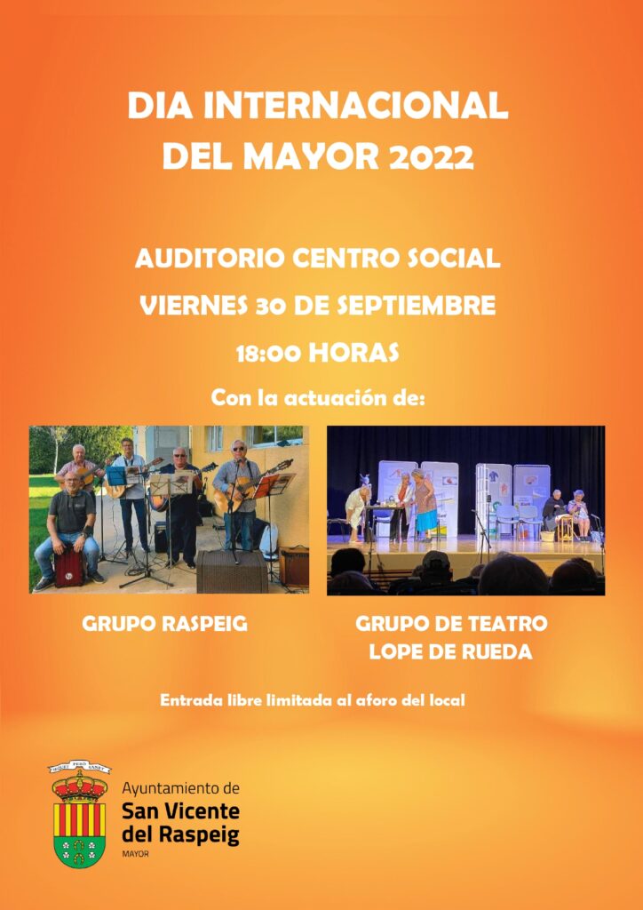 El Auditorio del Centro Social de San Vicente del Raspeig acoge el próximo viernes 30 de septiembre a las 18:00 el evento organizado por la Concejalía del Mayor para celebrar el Día Internacional del Mayor. Una velada llevada a cabo por personas mayores de 60 años empadronados en el municipio que contará con una actuación […]