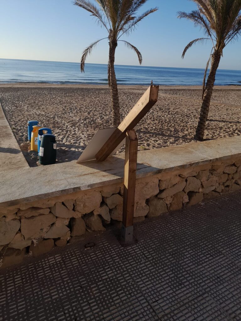 En el paseo marítimo de Muchavista, a la altura de la urbanización Las Lanzas, esta madrugada ha amanecido una señal informativa serrada por la mitad y dejada caer al suelo con toda la intención. Se trata de un cartel que informa de la prohibición de acceder al arenal con perros, que será repuesto. El concejal […]