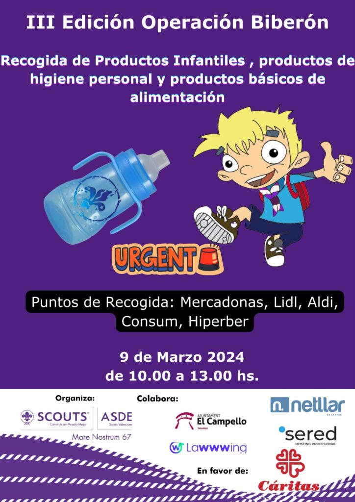En esta ocasión, las mesas petitorias se instalarán en todos los supermercados Mercadona del municipio, Lidl, Aldi, Consum e Hiperber, desde las 10:00 hasta las 13:00 horas Los integrantes del Grupo Scouts Mare Nostrum de El Campello se movilizarán de nuevo este sábado para desarrollar la campaña “Operación biberón”, que por tercer año consecutivo pide […]