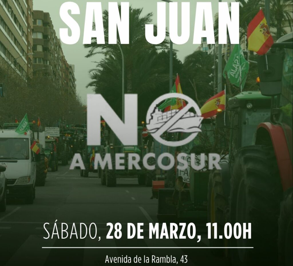 El Grupo político VOX en San Juan de Alicante, ha comunicado que el próximo sábado 28 de marzo, llevará a cabo una acción de calle a través de una mesa informativa situada en la Avda. De la Rambla 43, para informar a los ciudadanos sobre las consecuencias «devastadoras» del Acuerdo Comercial entre la Unión Europea […]